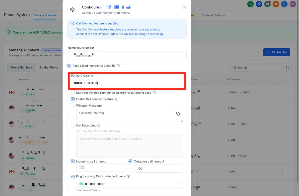 Enter your preferred forwarding number (e.g., your personal cell).