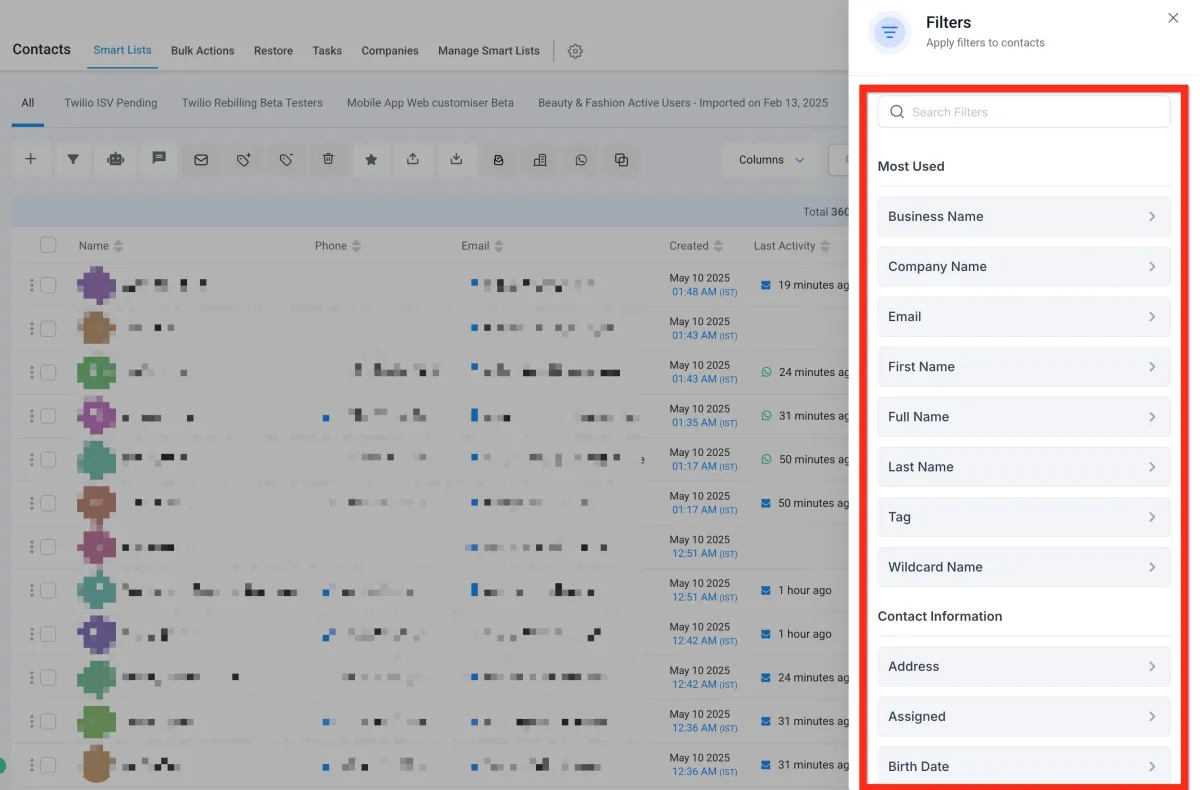 Filter your list to target the right audience.
