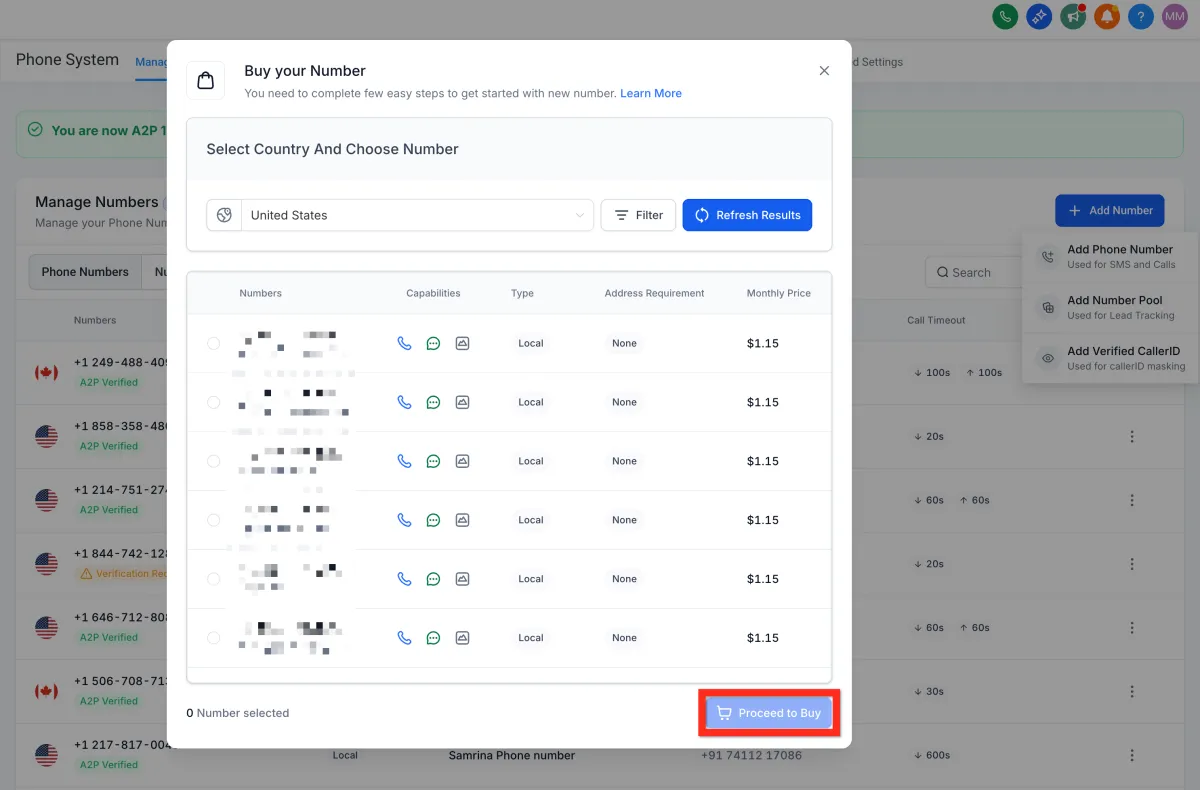 Click Add Number > Add Phone Number.