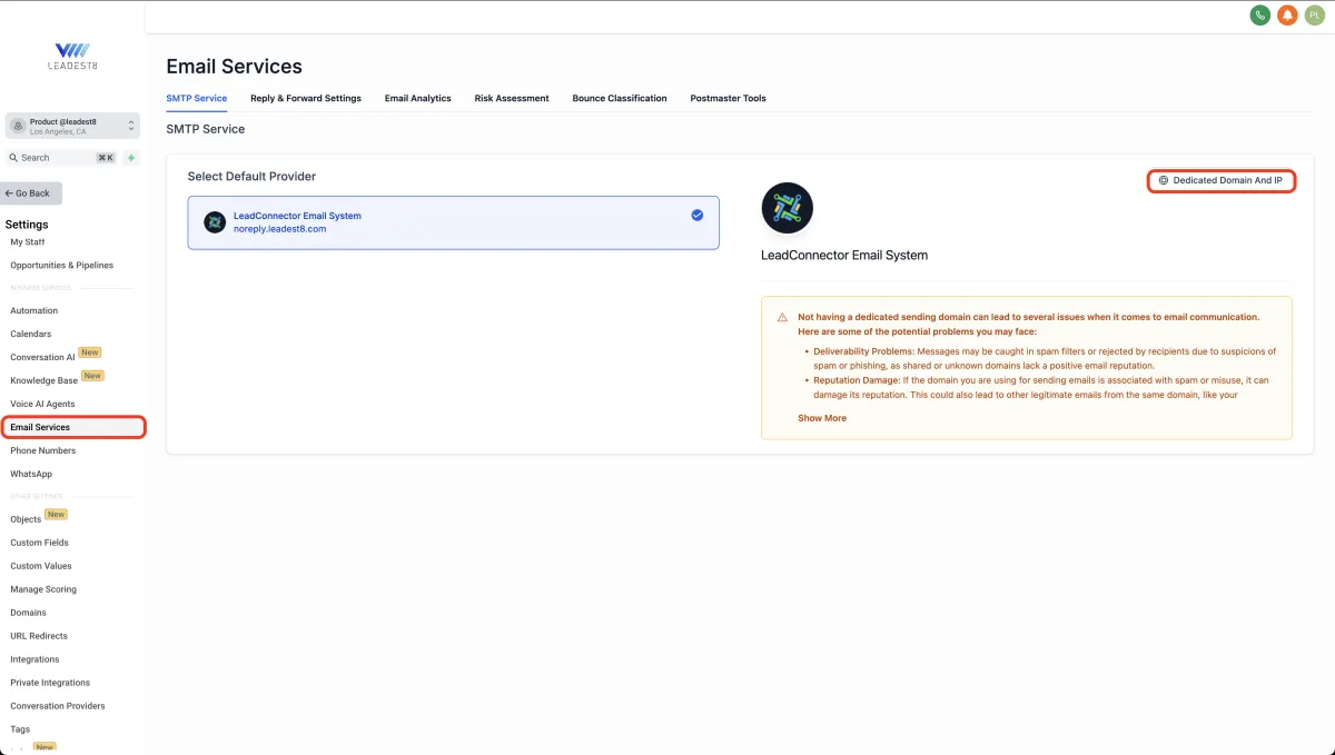 Navigate to Settings > Email Services.