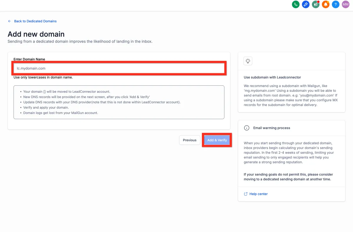 Click Verify Domain.