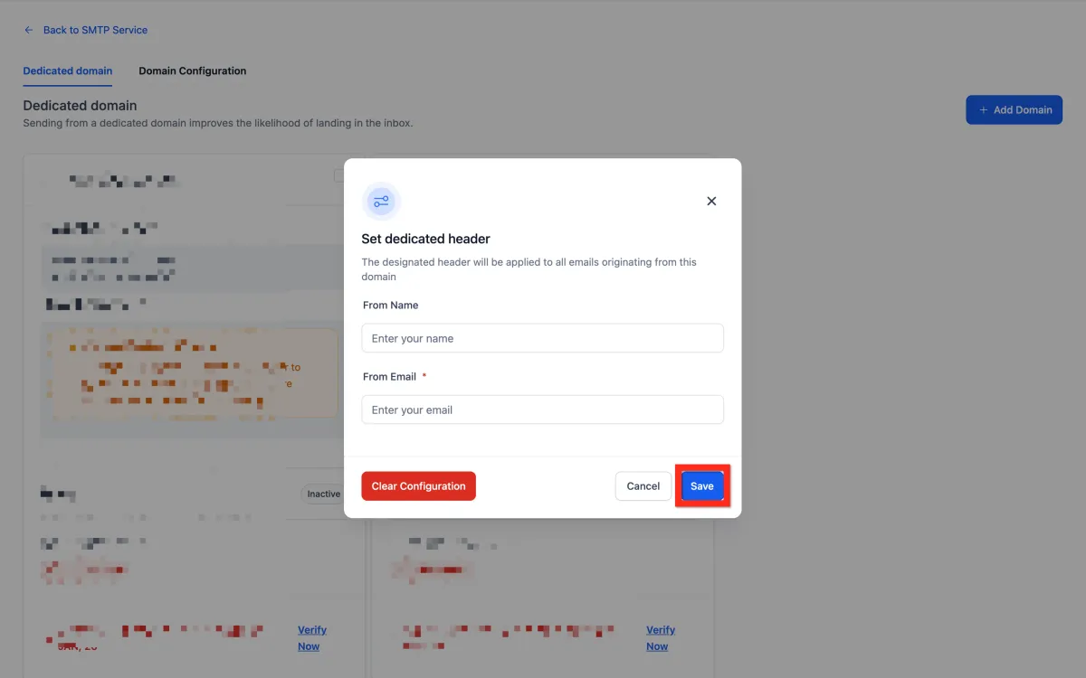 Enter your details (From Name, From Email).