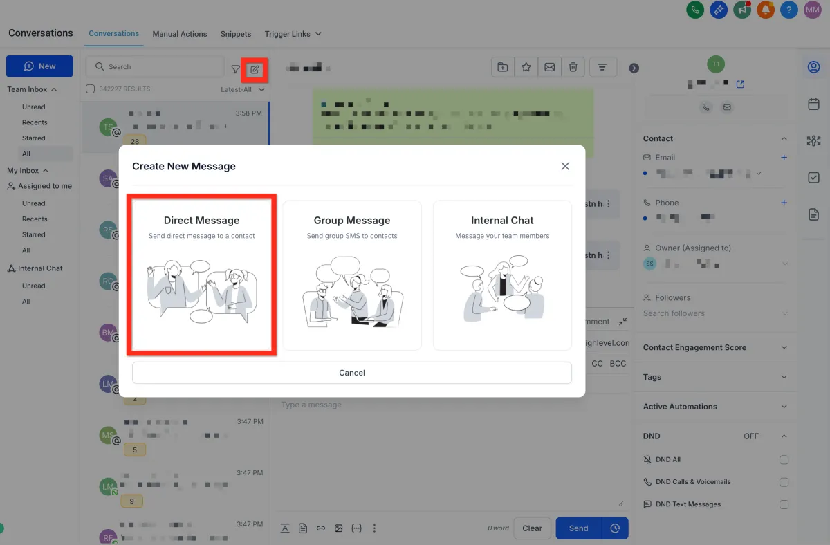 Select Direct Message.