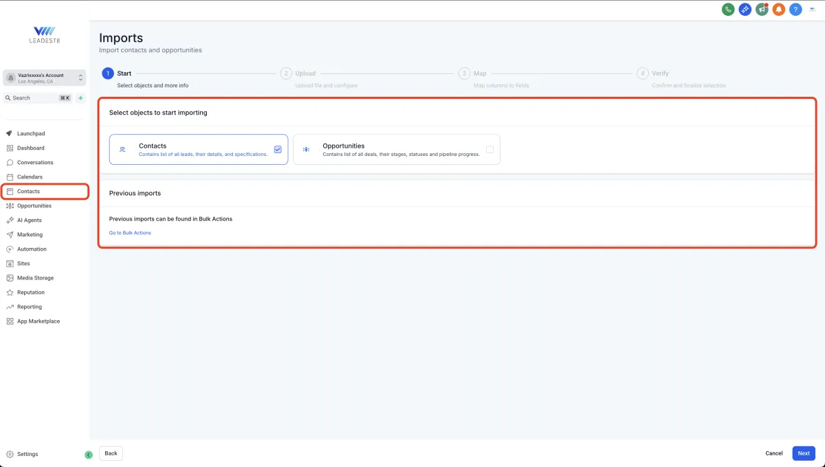 Importing contacts into leadest8 is the fastest way to bring your leads, clients, or customer lists into the platform. Whether you're switching from another CRM, onboarding new clients, or setting up your first marketing campaign, the import tool lets you upload and organize contacts quickly using a simple CSV file. You can also choose to import opportunities simultaneously, making your pipeline setup even smoother.
